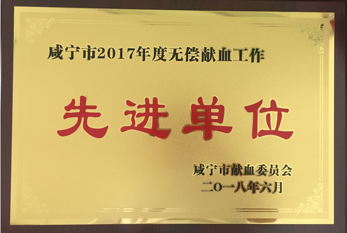 咸寧市無(wú)償獻(xiàn)血工作“先進(jìn)單位”